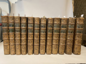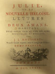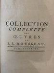 se compose ainsi : • Tomes I & II : Julie, ou la Nouvelle Héloïse [...] « Nouvelle édition originale » ; • Tomes III & IV : Émile, ou De l'Éducation ; • Tomes V à VIII : OEuvres mêlées [...] « Nouvelle édition, revue, corrigée et augmentée » ; • Tome IX : Dictionnaire de musique. « Nouvelle édition revue et corrigée » ; porte par erreur la date « 1766 » ; • Tomes X à XII : OEuvres posthumes ; contient notamment Rousseau juge de Jean-Jacques, Les Confessions, Les Rêveries du Promeneur solitaire, & Recueil de lettres. Un portrait gravé par SAINT-AUBIN d'après La TOUR, douze vignettes sur les titres, & 51 planches dont 37 figures par MOREAU & Le BARBIER, treize planches de musique et une table repliées. Plusieurs coiffes et mors accidentés ; cahiers roux ; quelques petites restaurations. Cohen, 908-909.