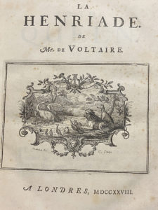 VOLTAIRE. La Henriade. A Londres, 1728. In-4°, cuir de Russie, triple filet doré encadrant les plats, dos à nerfs orné, tranches dorées (reliure anglaise du XIXe s.). PREMIÈRE ÉDITION ILLUSTRÉE & première édition sous ce titre et complète...