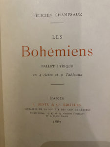 CHAMPSAUR (Félicien). Les Bohémiens. Ballet lyrique en 4 Actes et 9 Tableaux. Paris,E. Dentu & Cie, Éditeurs, 1887. Petit in-8° broché, couverture illustrée rempliée. ÉDITION ORIGINALE. Dix lithographies par Jules CHÉRET & illustrations dans...