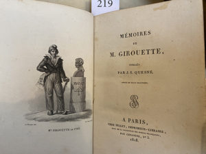 QUESNÉ (Jacques Salbigoton). Mémoires de M. Girouette. A Paris, Chez Pillet, Imprimeur- Libraire, 1818. In-12, demi-maroquin brun à coins, dos à nerfs, tête dorée (C. Chapalain). ÉDITION ORIGINALE. Trois figures hors texte gravées par...