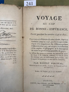 [VOYAGES]. PERCIVAL (Robert). Voyage au Cap de Bonne-Espérance, fait pendant les années 1796 et 1801 ; contenant l'histoire de cette colonie, depuis sa fondation jusqu'en 1795, que les troupes britanniques s'en emparèrent [...]. Traduit par P. F....