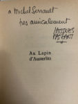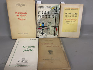 (Jacques). Au Lapin d'Austerlitz. Paris, Calmann-Lévy, 1962. Ex. du service de presse. Envoi de l'auteur à Michel Serrault. • BACRI (Roland). Le petit poète. Paris, La Canardothèque, 1957. Envoi de l'auteur à Michel Serrault. • CROMMELYNCK (Fernand) - SHAKESPEARE. Le Chevalier de la lune ou Sir John Falstaff. Comédie en cinq actes [...]. Paris, La Nef de paris - Editions, 1954. Envoi de l'auteur à Michel Simon. • HÉBERTOT (Jacques). Poèmes de mon pays. Paris, Eugène Figuière, 1911. Envoi de l'auteur à François Serpeille.