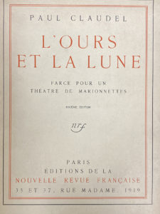 CLAUDEL (Paul). L'Ours et la lune. Farce pour un théatre de marionnettes. Paris, Éditions de la Nouvelle Revue française, 1919. In-4° broché.