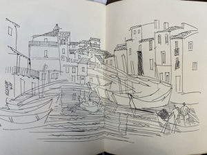 COQUIOT (Gustave). La Terre frottée d'ail. Paris, André Delpeuch, Éditeur, 1925. In-4° broché. 101 « dessins inédits » par Raoul DUFY, certains à pleine page ou sur double-page. Tiré à 116 exemplaires réimposés dans le format in-4°...