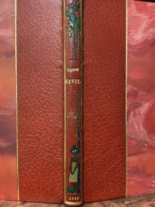 HÉMARD (Joseph). Code civil. Livre premier. Des Personnes. Paris, René Kieffer, RelieurÉditeur, s. d. [1925]. In-8° carré, demi-maroquin rouge à coins, filet doré bordant les plats, dos lisse orné d'un décor mosaïqué, tête dorée, non...
