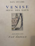 LECLÈRE (Paul). Venise seuil des eaux. Paris, A La Cité des Livres, 1925. In-4° broché, couverture illustrée en couleurs, étui de l'éditeur. Dix planches en couleurs par Kees VAN DONGEN. Tiré à 316 exemplaires, celui-ci (n° 152), un des 250...