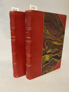 [NORMANDIE]. GOUT (Paul). Le Mont-Saint-Michel. Histoire de l'abbaye et de la ville [...]. Paris, Librairie Armand Colin, 1910. 2 volumes in-4°, demi-maroquin rouge à coins, filet doré bordant les plats, dos à nerfs orné, tête dorée, couv....