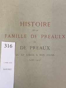 [PREAUX]. SAISSET (Frédéric). Histoire de la famille de Preaulx ou de Preaux du XIe siècle à nos jours (1066-1904). Dijon, Imprimerie Bernigaud et Privat, 1935. In-4° broché. Un frontispice héraldique. Tiré à petit nombre. Exemplaire sur...