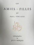VERLAINE (Paul). Les Amies - Filles. S.l.n.d. [Philippe Gonin, 1932]. In-4° en feuilles, sous couverture, chemise et étui de l'éditeur. 35 lithographies en sépia par Jean BERQUE. Tiré à 99 exemplaires et quelques-uns de collaborateurs, celui-ci...