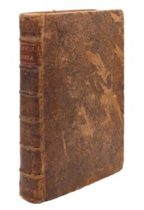 Lyon, Sébastien Gryphe, 1539. 2 parties en un volume in-folio, basane mouchetée, tranches jaspées (Reliure du XVIIIe siècle).Première édition collective des œuvres de Prosper d'Aquitaine (v. 390-463), disciple de saint Augustin et continuateur de la Chronique universelle d'Eusèbe de Césarée.