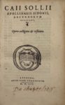 SIDOINE APOLLINAIRE — Opera castigata et restituta.