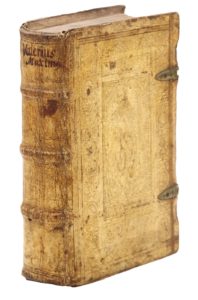 Bâle, Heinrich Petri, 1562. 2 parties en un volume in-8, peau de truie sur ais de bois, large encadrement alternant portraits en médaillons et rinceaux, grandes plaques allégoriques au centre figurant la Justice sur le premier plat et la Fortune sur le second, initiales MBL et date 1571 de part et d’autre, le tout estampé à froid, dos orné, titre manuscrit, tranches lisses, fermoirs métalliques (Reliure germanique de l'époque).Réimpression de l’édition publiée et annotée par l'humaniste suisse Heinrich Loris, dit Glaréan (1488-1563), parue pour la première fois en 1553. Marque de l'imprimeur gravée sur bois au titre et au verso du dernier feuillet.