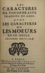 [LA BRUYÈRE (Jean de)] — Les Caractères de Théophraste traduits du grec : avec les Caractères ou les mœurs de ce siècle. Seconde édition.