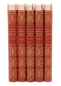 Paris, Denys Thierry et Claude Barbin, 1678-1694. 5 volumes in-12, maroquin rouge, triple filet doré, dos orné aux petits fers, dentelle intérieure, tranches dorées (M. Godillot).Première édition complète, en partie originale, et la seule qui ait été imprimée sous les yeux de l'auteur et corrigée par lui.