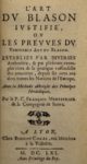 MÉNESTRIER (Claude-François) — L'Art du blason justifié, ou les preuves du véritable art du blason. Lyon, Benoît Coral, 1661. – Abbregé méthodique des principes héraldiques, ou du véritable art du blason.