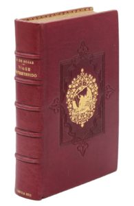 Lerida, Luys Menescal, 1611. In-12, maroquin grenat, encadrements à froid sur les plats, supra-libris doré, dentelle intérieure, tranches dorées (Brugalla, 1946).Troisième édition du célèbre roman picaresque écrit par un des comédiens les plus connus de l'époque, composé à partir de son expérience comme acteur ambulant entre 1600 et 1603. C’est un des ouvrages les plus divertissants de la littérature espagnole.