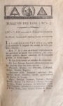 Paris, Imprimerie Nationale, 1794-1804. 23 volumes in-8, basane marbrée, dos lisse orné, tranches jaspées (Reliure de l'époque).Édition originale de tous les numéros parus depuis le premier, publié le 22 prairial an II (10 juin 1794), jusqu'à la fin du Consulat, en mai 1804. Après cette date, le Bulletin des lois de la République française devint le Bulletin des lois de l'Empire français.