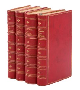 Grenoble, R. Philippes, 1671-1672. 4 volumes in-12, maroquin rouge, double filet doré, dos orné, dentelle intérieure, tranches dorées (Reliure de la fin du XIXe siècle).Édition originale.