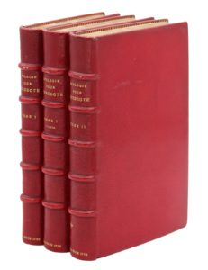 La Haye, Henri Scheurleer, 1735. 3 volumes petit in-8, maroquin rouge janséniste, dentelle intérieure, doublures de maroquin bleu décorées d'une riche dentelle dorée, doubles gardes, tranches dorées sur marbure (Cuzin – Marius Michel doreur).Édition la plus complète de ce « chef-d'œuvre du genre satirique » et « l'ouvrage le plus populaire d'Henri Estienne » (Schreiber), rétabli dans son intégralité et enrichi des commentaires érudits de Jacob Le Duchat.