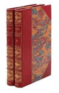 1764. 2 volumes in-8, demi-maroquin rouge avec coins, dos orné, non rogné (Reliure de la fin du XIXe siècle).La plus réussie des imitations de l'édition des Fermiers généraux, parue deux ans plus tôt.