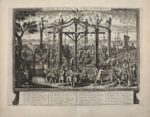 Extraordinaire et vigoureuse illustration comprenant 75 planches gravées en taille-douce, dont une quarantaine à double page ou dépliantes, parmi lesquelles se trouvent un frontispice dépliant, deux cartes de la Louisiane et du Mississippi, deux jeux de cartes satiriques, les portraits de Law, de son épouse et du roi Jacques III d'Angleterre, deux séries de caricatures et un feuillet gravé de table des planches.