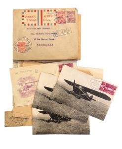 On joint : MARION (Fulgence). Les Ballons et les voyages aériens. Paris, Hachette, 1867. In-12, percaline bleue. - FAURE-FAVIER (Louise). Guide des voyages aériens. Paris, 1922-1925. 2 fascicules in-4. - DOLLFUS (Charles) et Henri BOUCHÉ. Histoire de l’aéronautique. Paris, L’Illustration, 1942. In-folio, demi-percaline rouge. - Un ensemble de cartes postales dont 17 des avions Sommer et une signée de Roger Sommer, des timbres souvenirs Mermoz, une photo dédicacée de Maryse Hilsz, des timbres et enveloppes Premier jour, 2 dessins au crayon d'un ff. in-4 de Clément Ader, un feuillet dépliant in-4 planche Aérostat Zeppelin.
