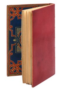 Paris, Jules Renouard, 1854. In-12, maroquin rouge janséniste, dentelle intérieure, doublures de maroquin bleu ornées d'un riche décor d'entrelacs mosaïqués de maroquin orangé et de fers dorés, chiffre A doré au centre du contreplat supérieur, gardes de moire bleue, non rogné, couverture, étui de chagrin rouge (Dupré).Réimpression en fac-similé de l'édition de Lyon, Louis Pascal, 1674, publiée et annotée par Alexandre de Laborde. On doit l'Abrégé de l'histoire et des antiquités d'Athènes à Jacob Spon.