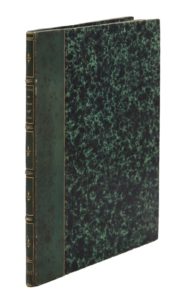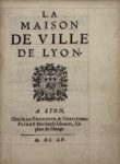 Lyon, Jean Champion & Christophle Fourmy, 1655. Petit in-4 de [8] ff., demi-chagrin vert, dos orné, tranches jaspées (Reliure du XIXe siècle).Unique édition de ce très rare et curieux document d'histoire lyonnaise. Il s’agit d’une description en vers de l'Hôtel de Ville de Lyon édifié par Simon Maupin, dont la construction n’est alors pas encore achevée. Léopold Niepce l'attribue à Jean Chastain et Barbier à Saint-Chartrain.