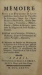 [FISCALITÉ] — Mémoire pour les bourgeois de Lyon possédans fonds dans les paroisses de Colonges, Saint-Cyr, Saint-Didier au Mont-d'Or, Sainte-Foy-lès-Lyon, Vernaison, Millery, Charly, Oulins et Grigny.