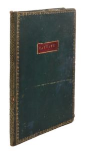 Lyon, décembre 1808. Manuscrit calligraphié de [27] ff. In-folio, chagrin vert à long grain, pièce de titre et encadrement d’un filet doré bordé de roulettes sur les plats, dos lisse orné d’un semis de fleurons, roulette sur les coupes, tranches dorées (Reliure de l'époque).Frottements, petits manques au dos, coins émoussés.