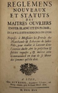 FERBLANTIERS — Reglemens nouveaux et statuts des maîtres ouvriers en fer-blanc et en plomb, de la ville et fauxbourgs de Lyon.