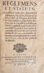 Reglemens et statuts des maîtres passementiers, tissotiers et rubantiers de la ville de Lyon. Lyon, Marcellin Sibert, 1713. Petit in-8 de 22 pp., bradel cartonnage marbré (Reliure moderne). Frontispice gravé sur bois.