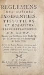 Reglemens des maîtres passementiers, tissutiers et rubantiers de la ville et fauxbourgs de Lyon. Lyon, P. Bruyset, 1763. In-8, demi-basane marbrée, dos orné (Reliure moderne).