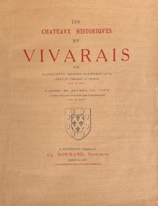 BENOIT-D'ENTREVAUX (Florentin) et Gaston de JOURDA DE VAUX. Les Châteaux historiques du Vivarais. Hennebont, Normand, 1914. In-4, toile ocre, non rogné, couverture (Reliure de l'époque). Édition originale illustrée de nombreuses vignettes dans le texte. De la bibliothèque Antoine Chappellon, avec ex-libris.