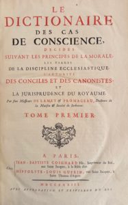LAMET (Adrien-Augustin de Bussy de) et Germain FROMAGEAU — Le Dictionaire des cas de conscience, décidés suivant les principes de la morale, les usages de la discipline ecclésiastique, l'autorité des conciles et des canonistes et la jurisprudence du royaume.
