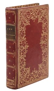 1769. In-8, maroquin rouge, importante dentelle dorée avec fer à l'oiseau aux angles, dos lisse orné, dentelle intérieure, doublures et gardes de soie bleue, tranches dorées (Reliure de l'époque).Édition illustrée d'un frontispice et quatre figures hors texte par Le Prince et Gravelot, gravées par Delaunay, Prévost, Rousseau, Saint-Aubin et Watelet, un fleuron de titre et quatre en-tête gravées à l'eau-forte par Choffard.