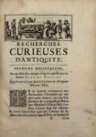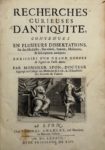 SPON (Jacob) — Recherches curieuses d'antiquité, contenues en plusieurs dissertations sur des médailles, bas-reliefs, statues, mosaïques et inscriptions antiques.