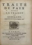 [Recueil de traités de paix]. Ibid., 1697. 7 pièces en un volume in-4, veau fauve, dos orné, tranches mouchetées (Reliure de l'époque). Ce volume contient les mêmes pièces que le précédent, à l'exception de la Lettre du roy à l'archevêque de Paris. Cachet ex-libris de René Bouvet. Coiffes, coins et mors abîmés; quelques rousseurs et piqûres.