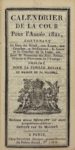 CALENDRIER DE LA COUR — pour l'année 1821, imprimé pour la Famille royale et la Maison de Sa Majesté.