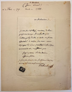 ALEMBERT Jean le Rond dit d' : Lettre autographe signée où il renvoie de manière sévère un livre à son destinataire, « je ne sais si le fanatisme aura envie de crier, moi je crois que fragili quaerens illi descendentem offendet solido ». Une...
