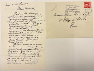 BACHELARD Gaston : Lettre autographe signée et adressée le 13 février 1962 à Henri-René LAFON. IL évoque son amitié passée avec Jules RENARD, « Il y a cinquante ans Jules Renard était mon compagnon de lecture. Je lis son journal tous les...