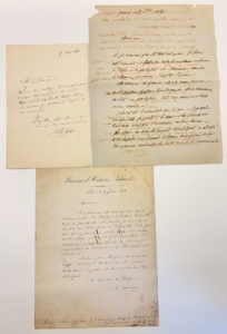 septembre 1841 adressée au Ministère des cultes pour soutenir les travaux de la commune Chaumot (1 page in- 8 recto-verso) et Eugène CHEVREUIL, lettre du 29 février 1868 adressée au Directeur de l'Ecole préparatoire de Médecine pour lui annoncer la livraison d'une caisse avec 170 échantillons de minéraux (1 page in-8).