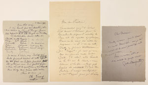 (COMPOSITEUR) : Ensemble de 3 lettres autographes de compositeurs. Henri DUPARC. Lettre autographe signée adressée au Président de la Société nationale de musique. Il organise son programme à Colonne avec Marie JAELL (Une page in-12)....