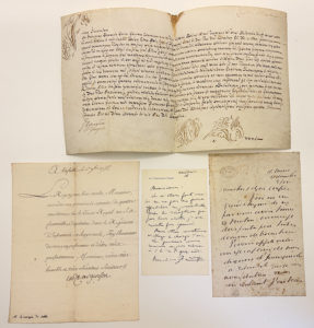 (DIPLOMATIE) : Ensemble de 4 lettres ou documents autographes signés. Bulle de la Cour de Rome (pièce signée le 23 décembre 1707 par des avocats du Conseil du Roi), Henry BROUGHAM ( 1 page in-12 recto-verso, amicale écrit de l'homme politique...