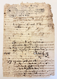 (ESCLAVE) Rare acte de vente d'esclave par Jan MOREAU. Cuba 1781. Acte in-8 recto verso avec signature. Bords effrangés et pâtés d'encre.
