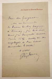 FEYDEAU Georges : Lettre autographe signée et adressée à M. GANGNAT. Il confirme son accord pour la représentation de La dame de chez Maxim à Moncey. 1 page in-12.