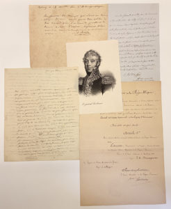 Acte de nomination de LACROSSE à la légion d'honneur par le Maréchal EXELMANS (1 feuille in-8). Le tout complété par une lettre autographe in-8 signée de François MOLLIEN, Ministre du Trésor de Napoléon (1 page in-8). Soit 4 pièces.