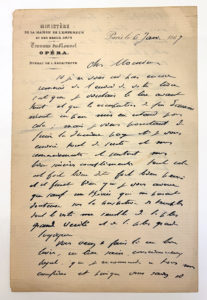pages in12 à en-tête du Ministère de la maison de l'Empereur et des beaux-arts. Travaux du nouvel Opéra.