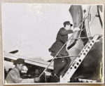 GAULLE Général Charles de : Deux photos d'agence représentant le Général de Gaulle et l'Ambassadeur des Etats-Unis en France Jefferson CAFFERY montant le 24 septembre 1945 à Orly dans l'avion le Skymaster offert par le Président TRUMAN au...