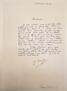 GRACQ Julien : Lettre autographe signée adressée à une institutrice qui lui demande un autographe et évoque sa passion pour son oeuvre qu'elle fait partager à ses élèves. Une page in-12.